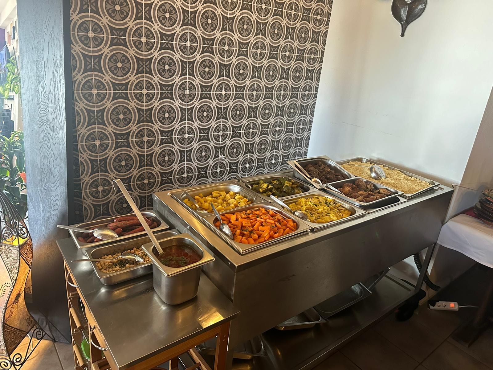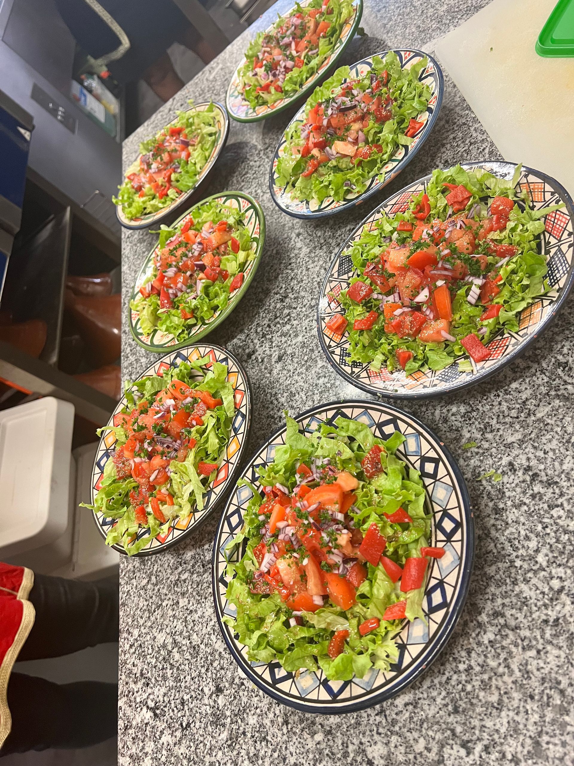**Accompagnement à choisir entre: riz au safran, semoule de couscous ou frites.